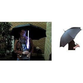LED Light Umbrella - Black with Blue Lighted Rod: Everything Else. You'll look like a cool geek holding a Jedi sword in the rain, who has just defeated the baddies and saved your girl from danger and now ready for a wet embrace from her. A Futuristic Take On A Everyday Item The LED umbrella is a cool looking conventional umbrella plus the shining led umbrella's shaft that will add futuristic outlook for its users. Measures 32.5-inches long and 41-inch opened diameter and powered by 3x LR44 button batteries. This Blade Runner style LED umbrella shows you how to look cool in the rain. The magic behind is the umbrella has an illuminating shaft, which LED is the light source.