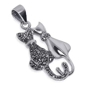 LWPS002 .925 Sterling Silver Cute Twin Cats Diamond Cut Marcasite 38mm x 21mm Pendant Charm: Jewelry. Fancy Felines Sterling Silver and Marcasite Pendant.Highly polished cast sterling silver and diamond-cut marcasite pendant with two contrasting feline friends sitting tail to tail.