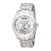 Marc Ecko Mens E95016G6 White Dial Bracelet Watch: Marc Ecko: Watches. Framing a silver dial, a ring of Swarovski crystals on a stainless steel bezel adds extra shimmer. An industrial-inspired band is tempered by a ring of crystals on the bezel of this watch, and by a detailed coat-of-arms design on its silvery dial. The Marc Ecko Men's White Dial Bracelet Watch features a unique stainless steel band that joins to a tonneau-style polished stainless steel case. Subtle, silver-tone shape hour indicators, black stick minute markers, and white luminescent hands make way for a prominent coat-of-arms design that takes center stage, completing the all-silver-tone theme of this stylish watch.