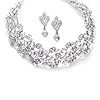 Mariell ~ Iridescent AB Crystal Bezelled Necklace Set: Jewelry. This silver rhodium set has a coordinating stretch bracelet ML-2006B-AB sold separately. Mariell's bold wedding or pageant necklace and earrings set abounds with sparkling bezel set iridescent crystals in a stylish domed shape. This magnificent Aurora Borealis necklace is adjustable from 16 inch - 20 inch and is 1 1/4 inch w. The matching earrings are 1 inch h. Elegant Bridal Shop is an authorized dealer for Mariell products.