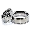 Matching Wedding Band Set, His & Her Tungsten Rings, Brush Matted Finish, Bevel Edge, 8MM (Size 8-15), 5MM (Size 5-8) Half Sizes: Jewelry. Many people are allergic to gold, silver, or platinum, or more commonly zinc or nickel, which are used as alloys in most jewelry. This beautiful ring set is made of Tungsten Carbide, classy yet elegant. Tungsten is extremely hard and dense. Combined with carbon and other elements, it becomes tungsten carbide, which registers between 8-9 on the Mohs hardness scale. Tungsten jewelry's roughly 10 times harder than 18k gold and 4 times harder than Titanium. In addition to Tungsten jewelry's design and high polish, part of its attraction to consumers is its technical nature.Hardness, assuring long lasting beauty. Permanently polished Tungsten Jewelry take a brilliant high polish and resist scratching longer than any metal ever offered to the public. Tungsten Jewelry will never bend out of shape. For people with sensitive skin, tungsten carbide is the perfect jewelry metal. You don't have to worry about this with tungsten jewelry, because tungsten jewelry is hypoallergenic.