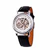 Mens Mechanical Skeleton Watch Hand Wind Up Silver Dial Black Leather Strap MW-07: Watches