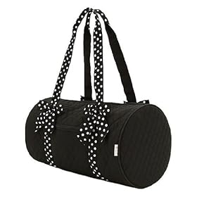 Medium Quilted Duffle Bag with Detachable Polka Dots Ribbons (Black/White): Everything Else. You can even carry this bag as your everyday handbag if you like a large sized handbag. This duffle bag is simple but cute! It is a medium sized duffle bag. It measures 18x9x9. It features 2 slip in pockets and one zippered pocket inside. It also has a zippered front pocket. It comes with 4 detachable polka dot accent ribbons. You can take all the rebbons off if you do not like them. It still looks pretty. This duffle bag can be used as an overnight bag, a travel bag, a sports bag, a beach bag, a book bag, a school bag, or a shopping bag etc. This duffle bag also can make a great gift for your friends and family.