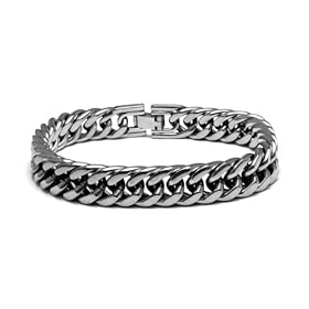 Mens Grey Titanium Curb Link Bracelet, 8.5: Jewelry. This 8.5-inch bracelet is formed out of classic curb links that will create a flat and comfortable fit around the wrist. Showcase the modern craftsmanship and unique titanium metal choice used on the Men's Grey Titanium Curb Link Bracelet.