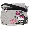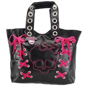 Monster High Lace-Up Tote Bag: Toys & Games. This terrifyingly trendy black faux-leather bag is decorated with skull stitching and dark pink velvet lace-up detail on the front; a rubber keychain hangs from one of the many grommets accenting the carry handles. Rock a style so sassy it's almost scary with the Monster High Lace-Up Tote Bag. The large snap compartment and internal zip pocket are perfect for stashing your stuff.
