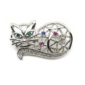 Multi-Color Austrian Rhinestone Silver-Tone Kitty Cat Brooch Pin: Jewelry. Multi-Color Austrian Rhinestone Silver-Tone Kitty Cat Brooch Pin.