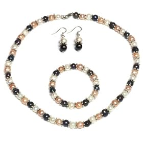 Multi-Color Freshwater Pearl Necklace Earrings Bracelet Set 7-8mm 18: Jewelry