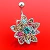 Multi-Color Jeweled Vintage Flower Design Belly Button Ring Crystal: Jewelry