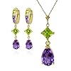 14k Necklace and Leverback Earrings with briolette Peridots: Jewelry. A complete set of 14 karat Solid Gold Leverback Earrings matched with an 18 inch 14 karat Solid Gold Necklace featuring multi faceted Natural Peridots.