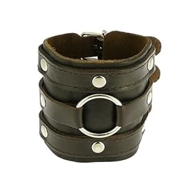 Neptune Giftware Dark Brown Leather Wide Triple Strap Cuff Wrap Gothic Wristband Buckle Fastening - 46: Jewelry. Has 5 holes for adjusting and is adjustable from approximately a maximum wrist circumference of 22 cm (8.5 inches) to approx 17 cm (6.75 inches). Made of real dark brown leather this bracelet combines both style with comfort. The leather cuff is approximately 7 cm wide. A cool looking Gothic style leather cuff bracelet.