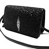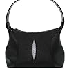 Stingray Leather Shoulder Bag: Clothing. A compliment to any wardrobe, this casual styled shoulder bag of genuine stingray leather with single pearl crown accent comes with top flap closure, 50 inch adjustable shoulder strap, and an easy access pocket in the back.