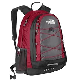 Northface Jester Backpack Style # AJVN-t58 (Chlpeprd/asptgr, One Size): Sports & Outdoors. The removable hip belt is a handy feature when on the trail or while riding a bike to help increase stability, and has a mesh water bottle pocket so that you can stay hydrated. This pack has a large main compartment that will easily fit books and binders, while the front organizer pocket keeps all the smaller necessities close at hand and easy to find. A breathable mesh back panel and padded shoulder straps make this bag feel more like a technical hiking backpack than a school book bag. This pack works well as a hiking day pack or a school book bag. A bungee system on the front of the pack is perfect for keeping a layer handy, and there is a reflective TNF logo for night time safety.