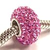 October Birthstone Pink Frosted Glass and Crystal Bead for European Charm Bracelet: Jewelry. Celebrate an October birthday with this pink frosted glass and clear crystal bead charm! This bead has a ring of clear crystals around the center of its frosted pink glass base.