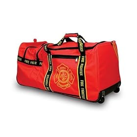 OK-1 03001 Large Wheeled Gear Bag, Red: Home Improvement. Model #3001 is a red large wheeled gear bag with a Maltese cross emblem and Firefighter inch woven into the shoulder strap. OK-1 prides itself in providing the top versatile bags which feature: 600 denier, PVC coated nylon; grease, oil and water resistant; over-sized coated zippers and double stitched stress points. These high-end bags come with reinforced seams and sturdy hardware. This bag also features heavy-duty in-line skate wheels, and three long bottom support rails.