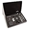 Optima Portable Watch Repair and Battery Replacement Kit: Watches. Please note, this toolkit will not open or repair every type of watch, however it will work on most watches. This kit comes with a complete line of tools to adjust most type of watch bands. The kit includes five screwdrivers, sizes 1.00mm, 1.20mm, 1.60mm, 1.80mm and one philips, two pin pushers sizes 0.80mm and 1.00mm, brass hammer with metal handle, spring bar remover, case opener, screw type link remover with extra tips, a plastic block to hold watch bands in place and finally a compact box to hold all the tools together for easy storage. This kit is your solution for band sizing! This watch repair tool kit comes with only the most commonly used tools and encased in a high qualty leather case. There are many tool kits out there, but this one is by far made of the best quality. This valuable tool kit package has all the right tools for watchmakers, collectors and hobbyists. Perfect gift for any watch enthusiast. If you purchase each tool individually, you would pay twice as much for the same unique tools. Ideally used for basic watch tasks to adjust links or change batteries. Each tool has its own unique location with flexible place-holders for easy removal. Toolkit includes 12 different tools to be used with various watch types. This toolset will last a lifetime of uses and save money on watch adjustments or repairs.