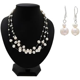 Outlet Item: Gift Set: Cormias Floating Freshwater Pearl Set: Jewelry. This floating pearl necklace and earrings set will enchant you! PLEASE NOTE: Real freshwater pearls have natural variations in hue and shape. Weight: 26.3g necklace; 1g pearl earringStone: Faux PearlMeasurements: 457.2mm(18in) chain; 3mm(.12in) diameter small pearl; 9mm(.36in) diameter large pearl; 12mm(.48in) x 9mm(.36in) x 9mm(.36in) earringGift sets are sure to please every jewelry lover on your list - shop today to enjoy incredible deals!Why wear just one strand of traditional pearls, when you can wear four unique strands at once? Cormia's Multi-Strand Freshwater Pearl Set features four layers of graduated freshwater pearls, which are strung along flexible silver wire. They meet at a small magnetic closure in the back. The pearls near the closure are tiny, and they get larger as they near the front of the necklace. The matching hook back earrings pair one tiny pearl with one large pearl, so they capture the easy elegance of the necklace. As such, each individual pearl and each complete Bracelet is unique and may not have the exact same shape, size, or color as pictured.PLEASE NOTE:Outlet items must be returned or exchanged within 10 days and are eligible for store credit ONLY.