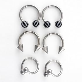 8 Pack-16G Surgical Steel Horseshoes: 2 Balls-2 Cones-2 Twisters-2 Retainers-in Hinged Gift Box: Jewelry. Plus 1 pair clear Bioplast cone retainers. This 8 pack horseshoe set is packaged in a hinged gift box, perfect for gift giving or as a gift for yourself! The set includes 4 horseshoes: 1 pair black/white stripe balls, 1 pair steel cones. 1 pair steel ball twisters. 16 gauge, surgical steel, 1/2 inch.