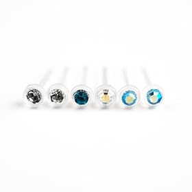 7 Pack-22G Bioplast Nose Studs: 6 Round Crystal Studs-Blues-Greens-Iridescent-1 Retainer-Gift Box: Jewelry. Plus clear Bioplast retainer. This 7 pack Nose Stud set is packaged in a hinged gift box, perfect for gift giving or as a gift for yourself! The set includes 6 nose studs: 5 Bioplast round jeweled-1 teal, 1 iridescent, 2 sapphire blue, 2 clear crystal. 22 gauge, 10mm.