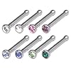7 Pack-22G Bioplast Nose Studs: 6 Round Crystal Studs-Blues-Greens-Iridescent-1 Retainer-Gift Box: Jewelry