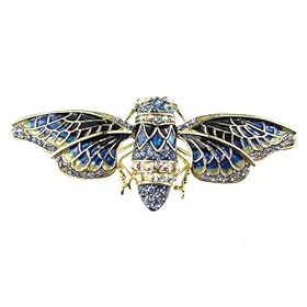 Indigo Blue Painted Enamel Crystal Rhinestone Moth Fashion Jewelry Pin Brooch: Jewelry. Adorned with irridescent clear and sapphire blue crystal rhinestones. Rare and hard to find, this piece is a blue colored Egyptian moth motif pin brooch. Detailed hand painted indigo blue enamel wings. Golden tone plated finish.