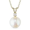 Pearl Necklace in 10k Yellow Gold with Diamond accent - 18: My Love Wedding Ring: Jewelry. The 8 mm round white pearl dangles beautifully from a 10k white and yellow gold twisted X shape. This delightful fresh watch round pearl pendant is set beautifully in lustrous 10k yellow gold. A 18-inch 10k yellow gold chain completes the look.