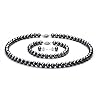 PearlsOnly Black 7-8mm AA Freshwater Pearl Set: PearlsOnly: Jewelry. This beautiful AA quality set features outstanding AAA luster, slightly off round AA shape and AA body.You won't believe how shiny and lustrous these pearls appear on their double-knotted fine silk thread that helps to prevent loss in the unlikely event of a break. You've just found the perfect size for you in black freshwater pearls. Popular 7 to 8 millimeter natural beauties fall gracefully around your neck and wrist, all the while complimented by simple button stud earrings for an interesting finish. Secured with 10k white gold fishhook clasps, the default lengths for the bracelet and necklace are 7 and 16 inches respectively.