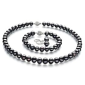 PearlsOnly Kaitlyn Black 8-9mm A Freshwater Pearl Set: PearlsOnly: Jewelry. This set is carefully hand strung on a versatile and flexible jewelers wire. This gorgeous black set is created from genuine high quality freshwater pearls. Carefully grown over many years, they have been gently harvested and matched to the strictest of standards.This set is part of hand selected selection of gorgeous freshwater black cultured pearls. You will love wearing this substantial 8 to 9mm size - a perfect size for those times when you need to impress.This beautiful A quality set features very nice AA luster, naturally beautiful off round A shape and Baroque body.This set consists of a beautiful 8 to 9mm black pearl necklace, accompanied by a matching pearl bracelet and a pair of sterling silver lever back post mounted pearl earrings. Purchasing a complete ensures that all your pearls will be perfectly matched.