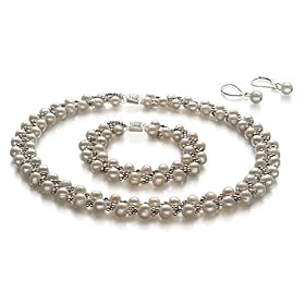 PearlsOnly Weave White 6-7mm A Freshwater Pearl Set: PearlsOnly: Jewelry. Perfect for both casual and formal events.This value priced A quality set features very nice AA luster, naturally beautiful off round A shape and AA body.And its noteworthy that this set is A quality, the luster of this set is of the higher AA grade and the body is AA which is also higher than the overall grade.This set consists of a beautiful 6 to 7mm white pearl necklace, accompanied by a matching pearl bracelet and a pair of sterling silver lever back post mounted pearl earrings. This gorgeous white set is created from genuine high quality freshwater pearls. Carefully grown over many years, they have been gently harvested and matched to the strictest of standards.This set is part of hand selected selection of gorgeous freshwater white cultured pearls.You will adore the flexibility of the 6 to 7mm pearl size. Included are matching butterfly backs to secure the fine and beautiful earrings.
