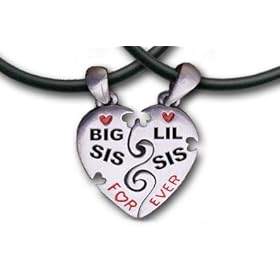 Big Sis & Lil Sis Heart Pendant Necklaces with chains. Pewter (2) piece set with PVC ropes are a great gift idea for an older big sister or a younger little sister! (Broken Heart Friendship jewelry design - Sister jewelry / sister gifts): Home & Kitchen. 2 pedant pieces made of pewter with 2 PVC rope clasp necklaces included.