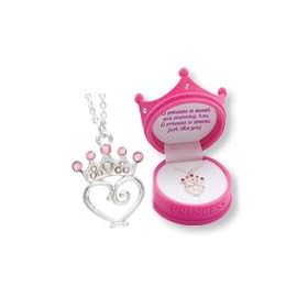 D.M. Pink Petite Princess Crown Necklace in Figural Gift Box: Jewelry