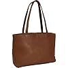 Piel Leather Cross Stitched Tote - 12 inch x 17.5 inch x 6 inch - Leather - Chocolate - Chocolate: Clothing