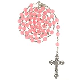 Pink Fiber Optic Rosary - 8mm Bead - Virgen Mary Centerpiece - Ornate Crucifix - 31 inch Necklace, 22 inch Overall Length: Jewelry. Pink Fiber Optic Rosary - 8mm Bead - Virgen Mary Centerpiece - Ornate Crucifix - 31'' Necklace, 22'' Overall Length; Comes in plastic Case.