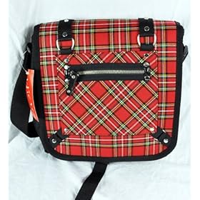 RED Plaid Messenger BAG Punk Rock School Rockabilly 80s