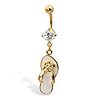 24K gold plated belly button ring with dangling flip-flop: Jewelry. Made from 24K yellow gold plated surgical stainless steel, this piece of body jewelry is accented with a faceted cubic zirconia and a dangling enamel-coated flip-flop charm. This 14 gauge belly button ring is playful and summery, the perfect piece of body jewelry to wear to the beach.