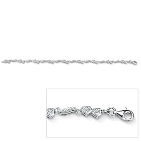 Platinum over Sterling Silver Diamond Heart and Wings Ankle Bracelet: Jewelry. 9 inch length. Fun and flirty diamond ankle bracelet. Created of pav diamond hearts set in pairs with alternating wing links. 1/8 carat T.W. A sparkling success in icy platinum over sterling silver.