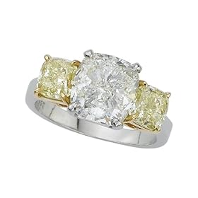 Platinum 6 ct. Yellow and White Cushion Cut GIA Certfied Diamond Ring: Katarina: Jewelry. yellow gold mounting that reflects the warmth of morning sunshine emanating from within each subtle gem. Master diamond cutters have crafted these three perfectly balanced diamonds into an heirloom piece whose elegantly simple platinum ring design sets off the grand 4.03 ct. center stone with precision and style. Each fancy yellow diamond is over 1 ct. and is set in its own 22 Kt. Whether for a stunning engagement ring, a reward to oneself or to commemorate a lifetime of treasured memories together, this ring says what your heart feels through its simple grandeur and artisan craftsmanship.