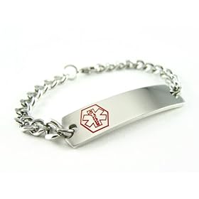 Pre Engraved - Coumadin Medical Alert ID Bracelet, Curb Chain: Jewelry. Black engraving is highly recommended to increase visibility. Coumadin Medical Alert Bracelets are very important to have on you at all time. Medical IDs can save your life if you are ever unable to speak for yourself. This medical bracelet comes with BLACK pre-engraved, medical information, that is easy to see and read. Medical ID Card is included with all items.