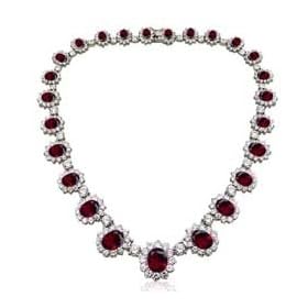 Pretty Woman Necklace & Earrings Ruby RED Set with Velvet Gift Box: Jewelry. Butterfly closure stays secure with additional clasp so you won't have to worry. You won't want to pass this necklace by for one minute more! Set in wonderful Platinum Silver each necklace measures approximately 16 inch in length and is brilliantly designed with graduated genuine color cubic zirconia stones surrounded by clear CZs. Graduated color CZs range from 1 carat to a full 5 carat center stone. Be sure to purchase this limited edition beauty in your choice of Ruby Red Emerald Green Aquamarine or Yellow/Citrine before they're gone!MATCHING DANGLE STUD EARRINGS NOW INCLUDED FREE WITH PURCHASE OF NECKLACE.