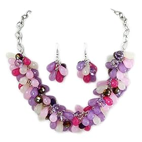 Thick Purple Beaded Necklace and Earrings Set Fashion Jewelry: Jewelry. They come with matching fish hook dangle earrings! Necklace measures 16 inch long and has a 2 inch extension. Here is a fun thick purple beaded necklace and earrings set. You'll find a perfect mix of different colored purple beads bundled up and held by a thick silver chain. Your necklace and earrings set will come to you in a foil gift box perfect for gift giving.