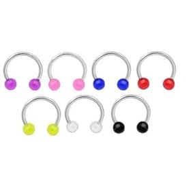 7 piece lot Red, clear, pink, purple, blue, yellow, black ball uv horseshoe lip Tragus belly nipple ring Surgical Steel 16 gauge, 3/8 inch (10mm) 16g: Jewelry. Set of 7 Circular barbell horseshoe ring, 316L high grade surgical steel, Size 16 gauge, length 10mm.