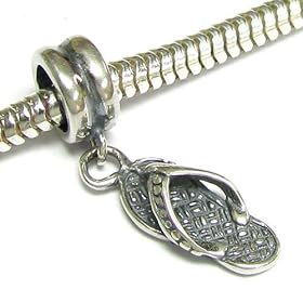 Queenberry (Free S/H) Sterling Silver Beach Sandal Flip Flop Slipper Dangle Bead Charm For Pandora Troll Chamilia Biagi European Jewelry: Jewelry. It is compatible with Pandora, Chamilia, Biagi, Troll, and other European jewelry.