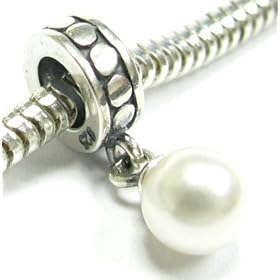 Queenberry (Free S/H) Sterling Silver Swarovski Crystal White Pearl Dangle Bead Charm For Pandora Troll Biagi Chamilia Birthstone June: Jewelry. It is compatible with Pandora, Troll, Chamilia, Biagi, and other Italian jewelry.