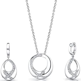 Radiant Simplicity: Sterling Silver Rhodium Finish Pendant Necklace Earrings Set with Cubic Zirconia: peora: Jewelry. Dimensions: Pendant: Length: 1 inches x Width: 1 inch and weight: 5.00gms. You will enjoy jewelry art that exudes modern elegance and impeccable style. This Pendant Necklace Earrings Set is crafted from genuine .925 Sterling Silver Rhodium Finish and gleams with a high polished White Gold finish. A classic design celebrates effortless chic with a delicate motif of dazzling White Cubic Zirconia gemstones. The pendant comes with an 18 inch Box Chain secured with a spring ring clasp. The earrings have an easy to wear, popular Huggie Hinged-hoop closure. Earrings: Length: 1 1/2 inches x Width: 5/8 inch and weight: 8.20gms.