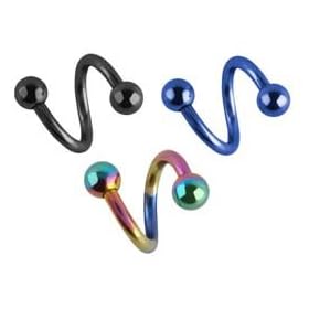 3 pc lot Rainbow, Black, Blue Anodized titanium Twist Spiral Ring lip tragus eyebrow ear belly nipple - 16 gauge, 16g: Jewelry. 3 Circular spiral rings, anodozed titanium over 316L high grade surgical steel, Size 16 gauge, length 3/8.