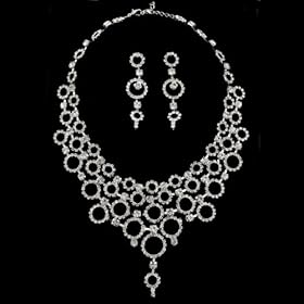 Rhinestone Circles Wedding Necklace Earrings Set: Jewelry. Gathered like glistening bubbles in a choke formation, this unique pair of necklace and earrings is winsomely set to catch everybody's breath away.