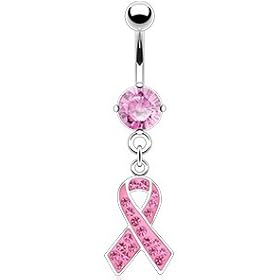Pink Ribbon with CZ Stones Breast Cancer Navel Ring: Jewelry. Cute and glimmering pink zirconia stones cover the ribbon dangling from a 6MM vivid light pink , and solid hypoallergenic steel.