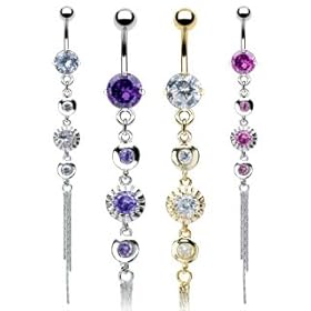 Four Round Clear Cubic Zirconia Vintage Dangle Belly Ring - Gold Plated - 14G - 3/8 inch Bar Length - Sold Individually: Jewelry. Four Round Clear Cubic Zirconia Vintage Dangle Belly Ring - Gold Plated - 14G - 3/8 inch Bar Length - Sold Individually.