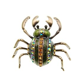 Sacred Scarab Green Beetle Topaz Crystal Rhinestone Insect Fashion Pin Brooch: Jewelry. Sacred bronze legged beetle pin brooch with olivine body, studded with lines of topaz and topaz AB crystal rhinestones.