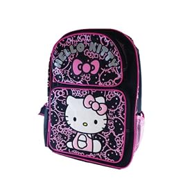 Sanrio Hello Kitty Large Backpack - Black with Pink Glitter: Toys & Games. Main zip compartment with 2 front pockets. Measures 16x12x4. Large size. Made of canvas. Adjustable padded straps. 2 side pockets.