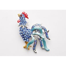 Enamel Blue Sapphire Crystal Rhinestone Chicken Crowing Rooster Hen Pin Brooch: Jewelry. Its tail is a combination of blue crystal rhinestones as well as a gorgeous baby blue enamel paint. Designed in a silver-tone metal, this brooch is a beautifully crafted rooster hen with sapphire blue crystal rhinestones throughout its body.